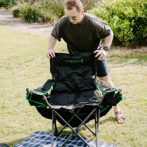 The Kampsmart Canopy Camping Chair is built for comfort, convenience and protection! You can enjoy long days camping, watching sport or simply relaxing in your backyard.